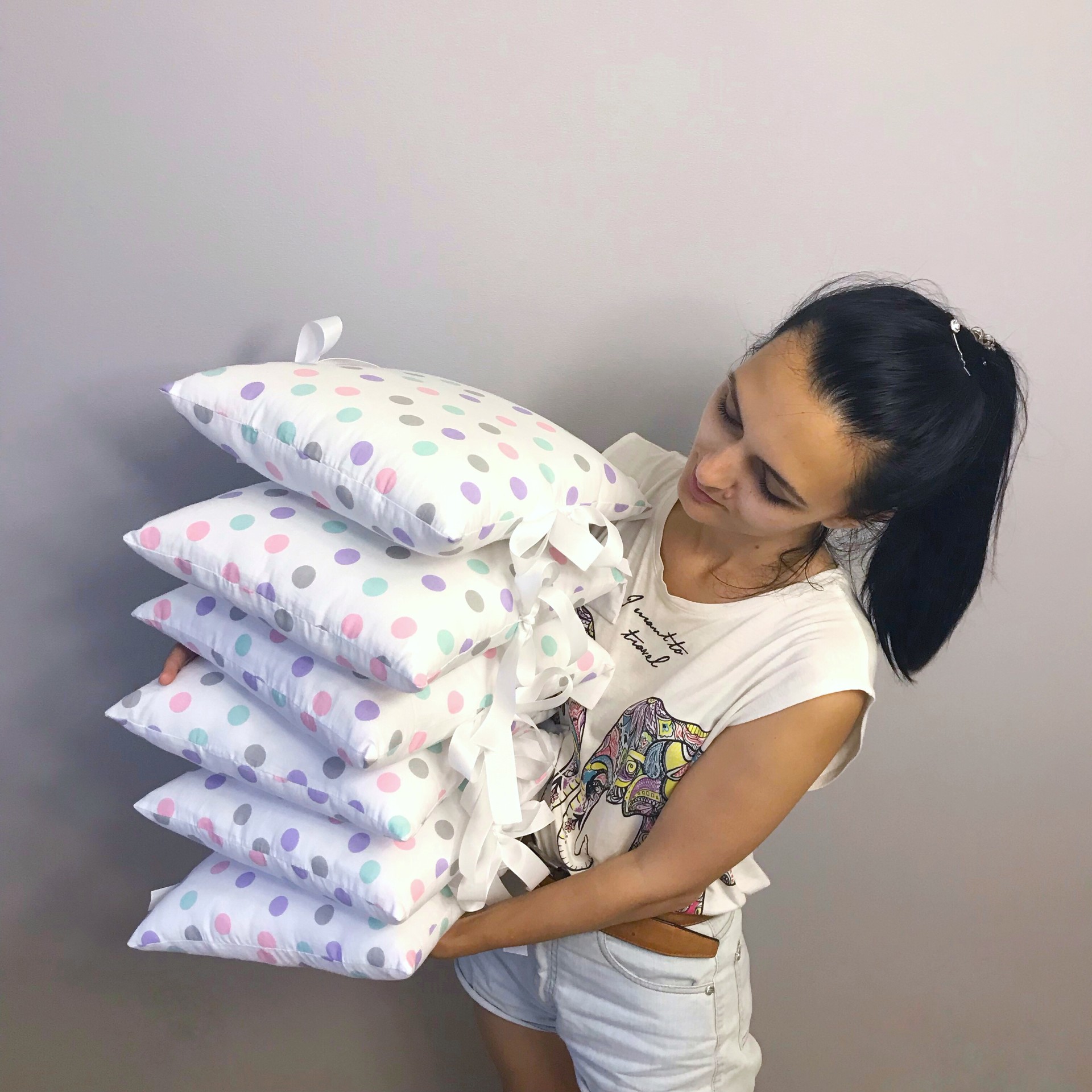 Собственное производство. Я уверена в своих изделиях, на используемые мной ткани имеются сертификаты подтверждающие качество и экологичность. Покупайте для детей только лудшее!
